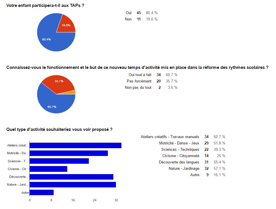 Pour la préparation de la Commission TAP du 6 octobre, un questionnaire a été envoyé à tous les familles. Voici les résultats