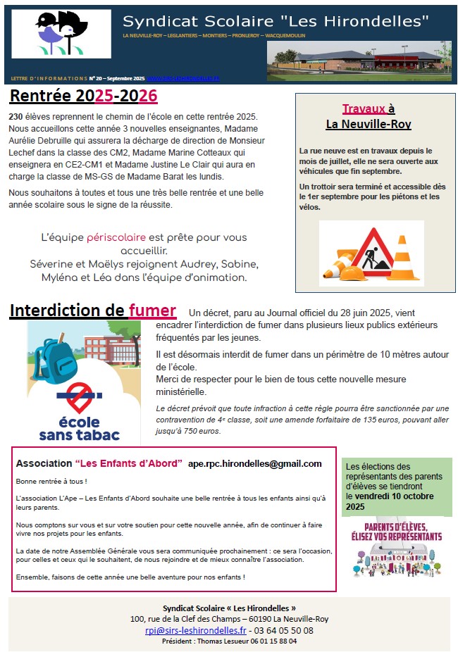 | Lettre N°20 - Septembre 2025 | Lettre N°19 - Juin 2023 |